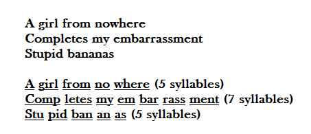 When diving into this debate, it is necessary to explore the structural composition of music and poetry. Structurally, music and poetry have more in common than we think. Much like music, poetry has to be heard out loud to be appreciated as poets use phonetics to enhance the meaning of the written word. One way to achieve this is through the repetition of certain sounds through literary devices like alliteration. But the element which adds to the musicality of a poem is the meter which is its rhythmic structure. Meter is the number of syllables in a line, some being stressed (enunciated with more emphasis) while others are unstressed (enunciated with less emphasis). As for what a syllable is, it is one complete sound within the pronunciation of a word. For instance, in this haiku, a Japanese poem with a fixed number of syllables, by Apollo, the number of syllables is as follows (brownie points for you if you recognize where this is from).