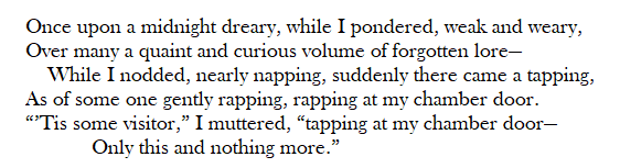 By using different combinations of syllables, different meters are created. When these meters are used, the result is a poem that sounds like a song when read out loud. For example, the following stanza from The Raven by Edgar Allan Poe might be your farthest guess of a musical poem considering the recurring theme of grief and loss prevalent throughout the poem. Yet the way its words rhyme in a systematic pattern and the placement of stressed and unstressed syllables give it a musical quality when read.